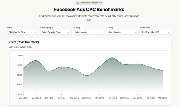 - Head to the Facebook Ads CPC Benchmark Tool.