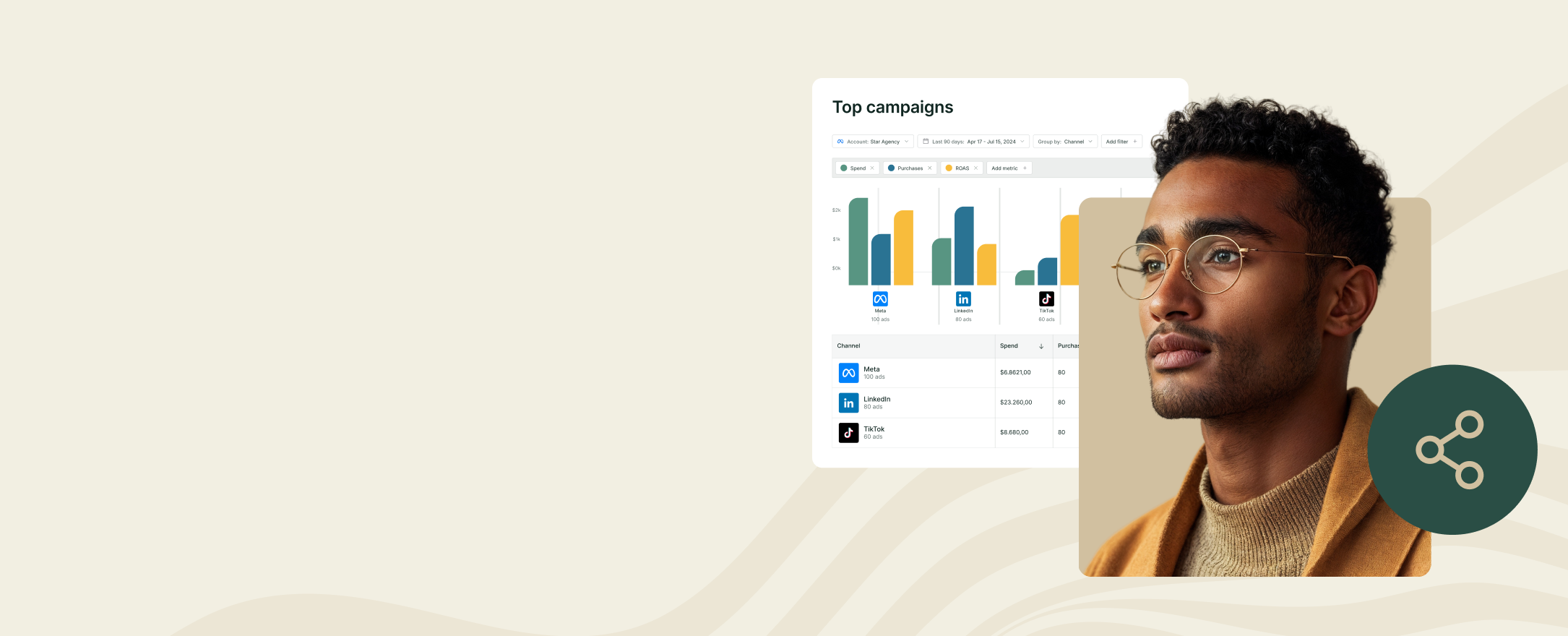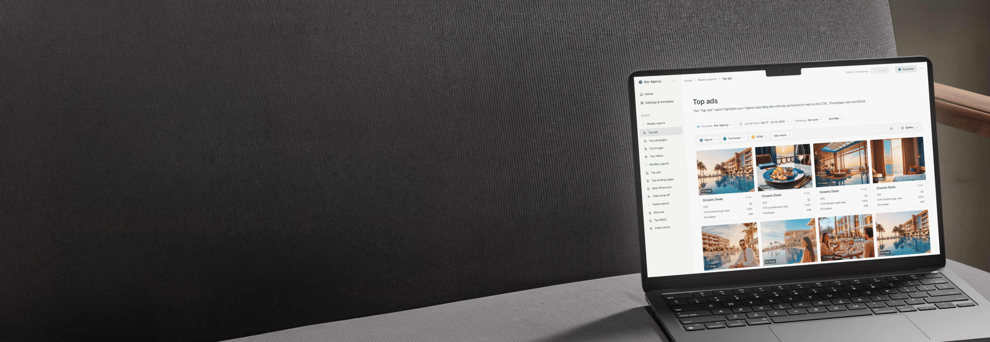 Build reports that combine data from multiple ad accounts and/or different platforms in the same place. Get a true, holistic view of your ad performance without jumping here and there.