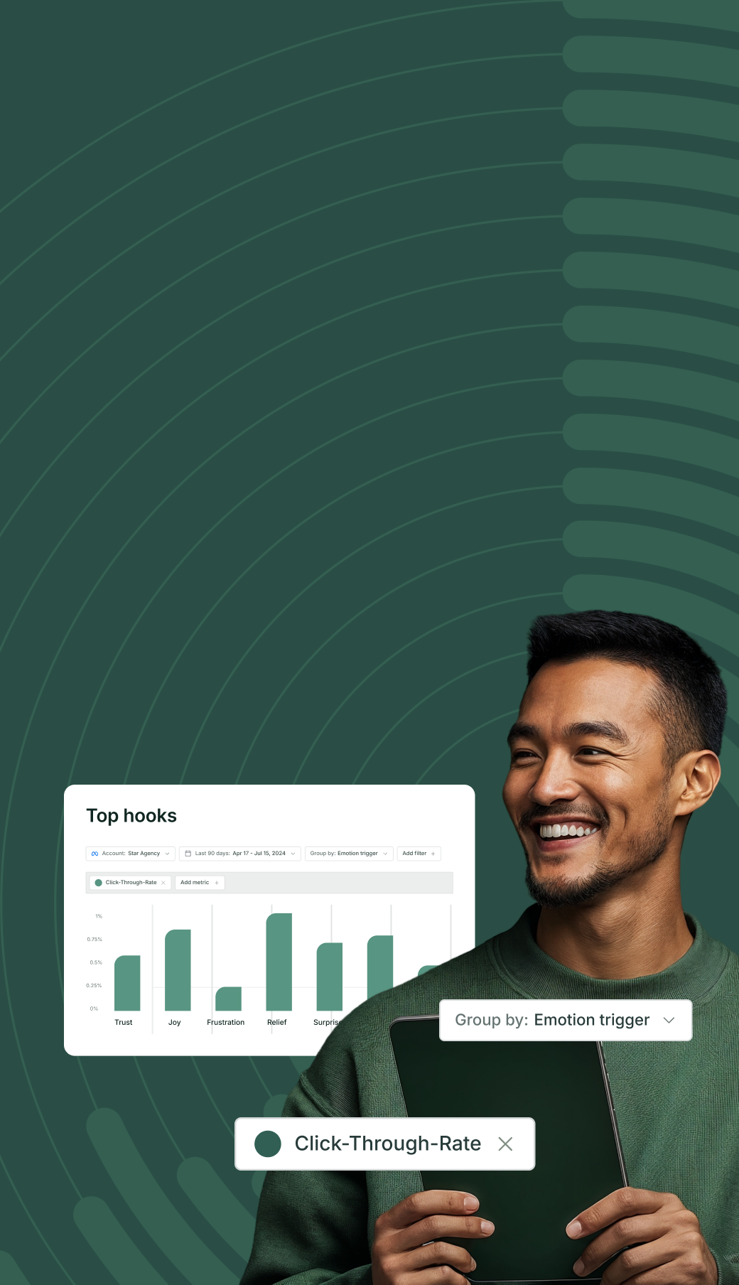Superads breaks down your ads into new dimensions, revealing what’s driving performance—hooks, messaging, emotion triggers, and more. Without naming conventions.